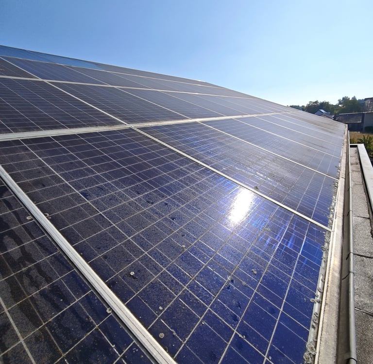Professionelle Reinigung von PV-Anlagen und Glasoberflächen.